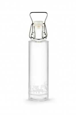600 ml hand made glass bottle with deer etching - swing topĀ
