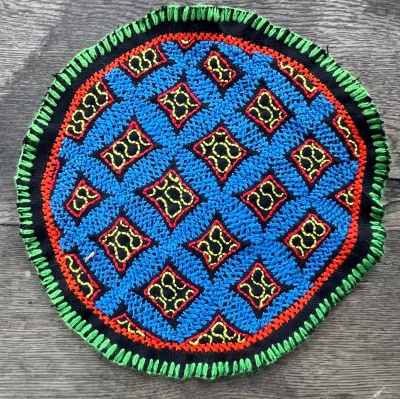 Round Cloth 19cm diameterThe Shipibo-Conibo are an indigenous people along the Ucayali River in the Amazon rainforest in Peru. Many of their traditions are still practiced, such as ayahuasca medicine work. Medicine songs have inspired artistic tradition and decorative designs found in their clothing ...Read more