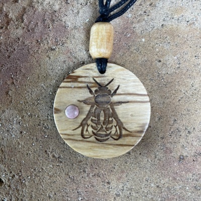 Made in Peru from sustainable Palo SantoBee with Rhodochrosite