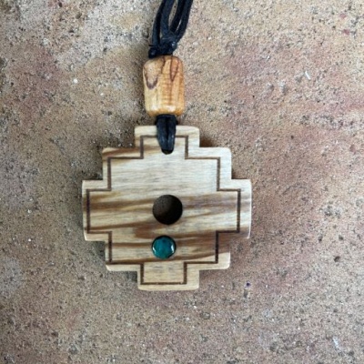Made in Peru from sustainable Palo SantoInca Cross with Peruvian Turquoise (Chrysocolla)