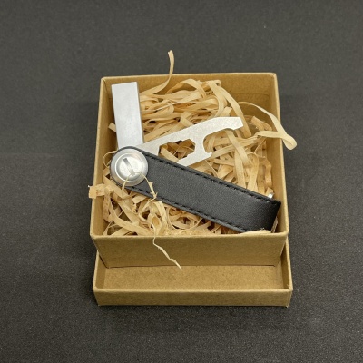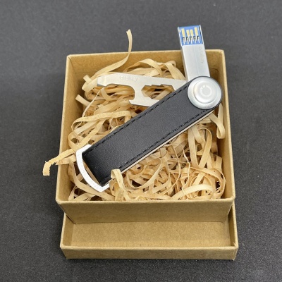 Black Leather Orbitkey with Multi tool (Bottle opener, multi-size hex wrench, box cutter, flat-head screwdriver, file) and USB (Fast transfer, slim 8GB USB 3.0 flash drive)