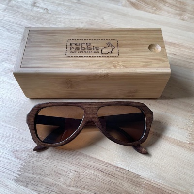 Rare Rabbit wooden Oak sunglasses in Natural Dark - Small Jet style100% UV protectionPolarizedSpring hingesĀ Timber case
