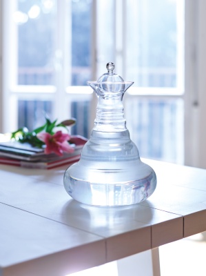 The carafe Alladin is the standard version in the range of carafes. The Alladin with the Golden Flower of Life logo in the base has been one of the most popular for many years. The cascading design of 6 sequential sections, with the volume of each section corresponding to one of the first 6 numbers of the universal Fibonacci sequence, aligns with the geometry found everywhere in nature. Revitalized water shows a 6-sided crystalline structure which corresponds to its increased level of energy and life force.